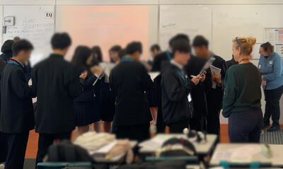 今回のオープンハイスクールは,生徒会やボランティアの生徒たちが中心となって企画・運営を行いました。来場された皆様に星陵高校の雰囲気や特色を感じていただけるよう,学校紹介や校内ツアー,進路・教務に関する映像の視聴など,さまざまなプログラムを実施しました。座談会では,中学生や保護者の皆様からの質問に在校生が直接答え,高校生活のリアルな声をお届けしました。また,探究体験プログラムでは,高校での学びをグループで体験していただきました。生命科学類型の説明会では,紹介動画の後に在校生によるパネルディスカッションを行い,クラスの様子や進路について紹介しました。校内や部活動の見学も,生徒の案内のもとで行いました。