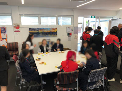 Applecross校生と味わいながら交流しました。