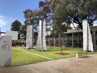 学校のいたるところにアート作品があります。