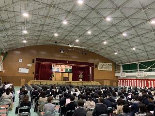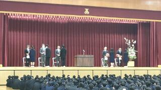 多くのご来賓、保護者、ご親族の方々をお迎えして、第77回卒業証書授与式を挙行しました。式典には2年生(78回生)も参列し、厳かな雰囲気の中、予定どおり執り行われました。式典の後、保護者代表の方から77回生学年団の先生方へ挨拶と花束贈呈があり、それに対して学年主任の先生からも挨拶がありました。予定されていた卒業式の行事がすべて終わった後は、2年生が体育館の復元を行いました。