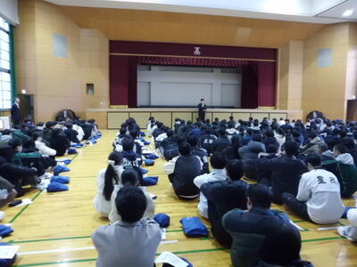 学校長より挨拶、人の話を聴くこと、ルールの遵守の重要性についての話があり、本校生徒としての誇りある行動を期待する旨の訓示がありました。
