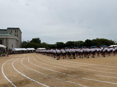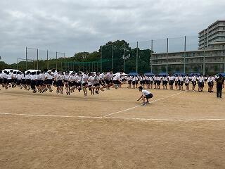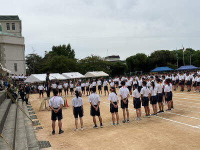 10月3日(金)第77回体育祭が実施されました。前日の午後から予行を行い、生徒会を中心に演技説明や誘導の確認などを行って、いよいよ本番を向かえました。