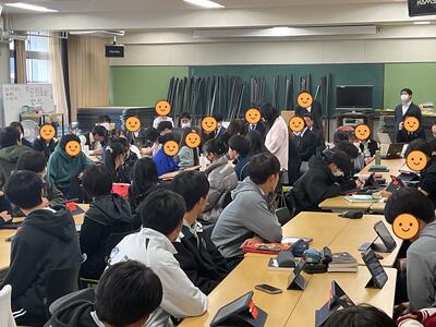 【高等学校DX加速化推進事業】により整備した「第2コンピューター教室」と「視聴覚教室(大講義室)」において、新しい学習環境下で行う授業実践をご覧いただきました。また,星陵高校の授業を他校教員・中学校教員・教育関係者にご覧いただきながら,主体的・対話的で深い学びへの授業改善や観点別学習状況の評価に関する理解を一緒に深めることができました。