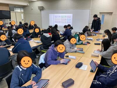 3限から6限にかけて行われた授業公開では,特別な「見せるための授業」ではなく,ICT活用が日常に溶け込んだ「星陵の日常」をご覧いただきました。例えば,共通テスト対策演習においてGoogleフォームで生徒の回答を即時に集計し,誤答が多かった箇所を重点的に解説する効率的な指導や,1年生の数学で生徒が解いた解答の写真を送らせて全体でシェアする場面など,デジタルを「思考の共有ツール」として活用する姿が各教室で見られました。参観されたみなさんからは,電子黒板やパワーポイントなどがデフォルトとして使いこなされている点や,教員が積極的にICTを取り入れていることが,生徒の主体的な活用につながっているといった心強いご感想をいただきました。