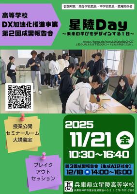 つきましては、これらの成果を広く公開し、ご参加の皆様とともに未来の教育について考える機会として、下記により【高等学校DX加速化推進事業】第2回成果報告会[星陵Day〜未来の学びをデザインする1日〜]を開催いたします。