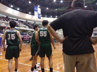 相手は初めからオールコートDFで本校のガードに自由なプレーをさせないようにプレッシャーをかけていました。昨年夏休みにしたことがあり、相手のプレーについてある程度想定はしていました。しかし、それでも特にフィジカル面での力の差を痛感し、ほとんど自由にさせてもらえない展開が続きました。第3クオーターには少しずつ相手のスピードや当たりに慣れ、互角の戦いを見せる時間帯もありました。しかし、そこで体力を使い果たし、最終クオーターでは再び突き放される形となりました。
